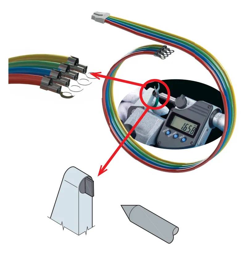 在對作為壓接線束時高度的壓接高度部進行測量時,較多使用專用千分尺。