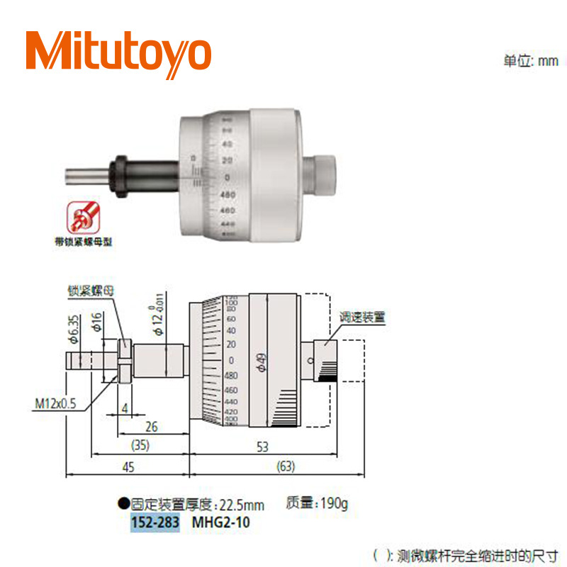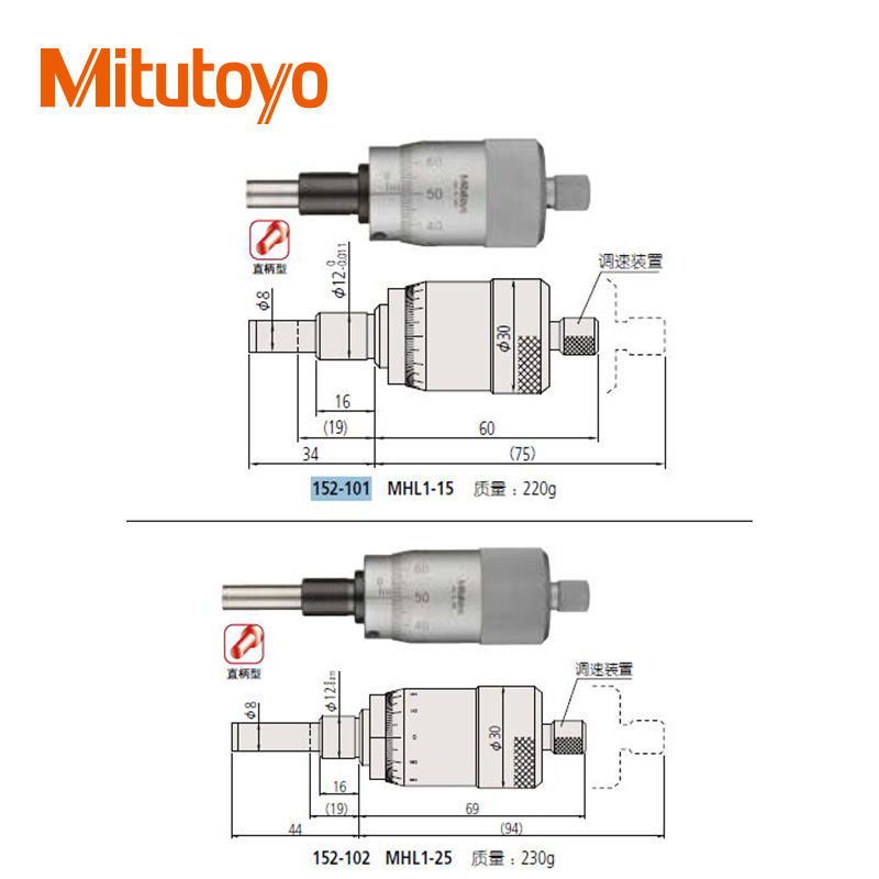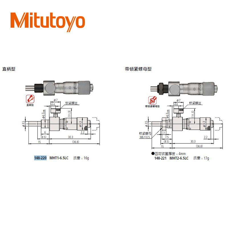 • 測微頭測微螺桿直徑為8mm的中型標準型(0-50mm)