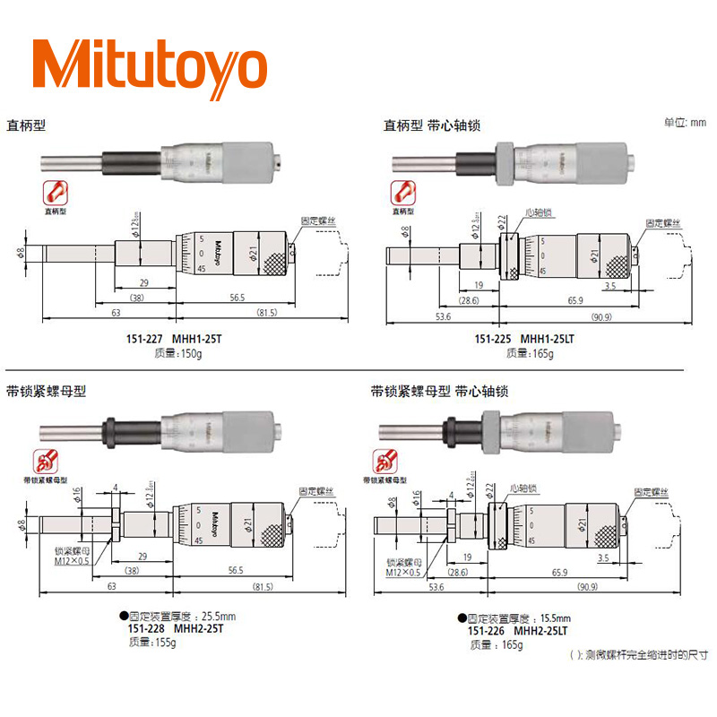 • 測微頭帶有可調零微分筒的小型化標準型(0-13mm)