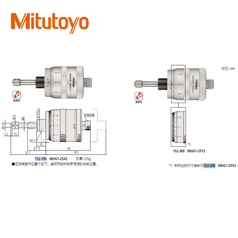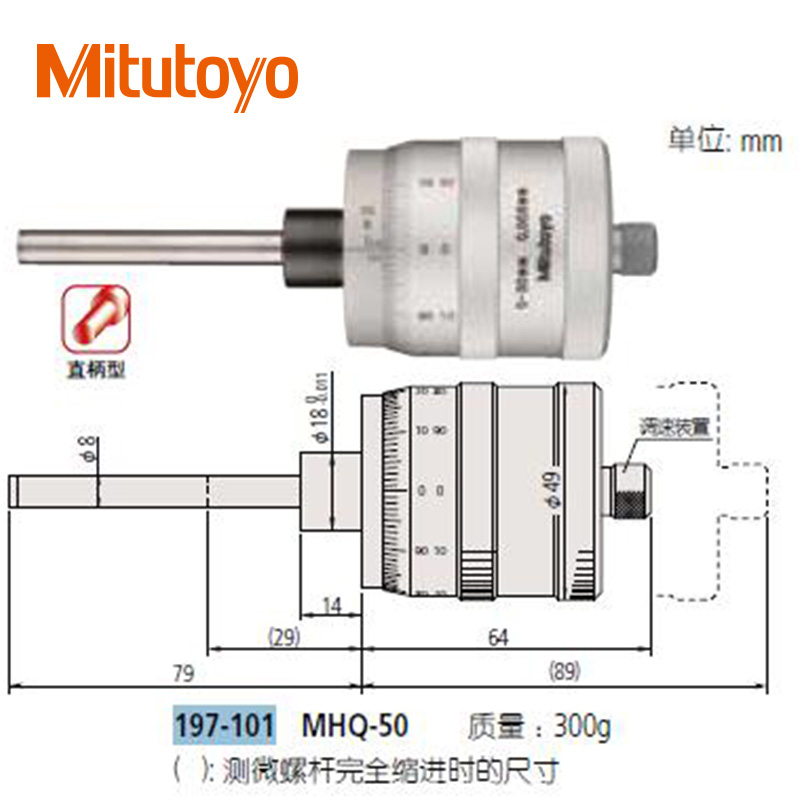 • 測微頭直進式測微螺桿大直徑微分筒型(0-50mm)