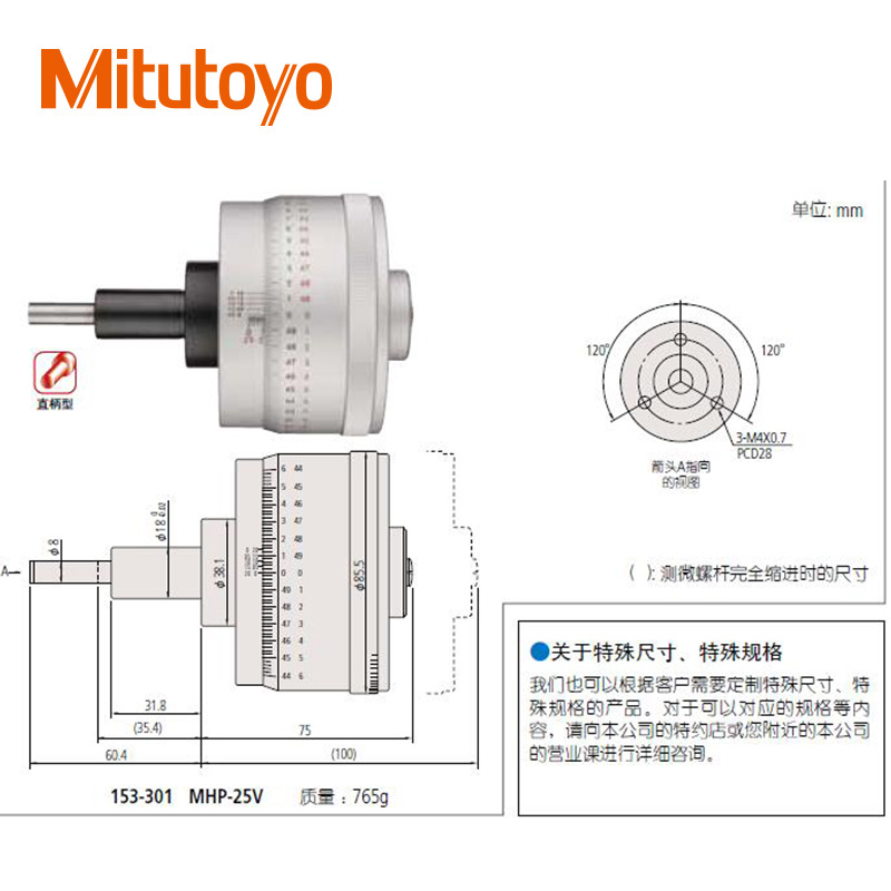 • 測微頭超小型(0-6.5mm)